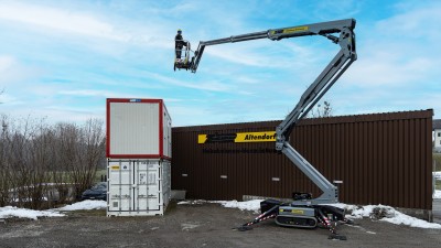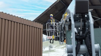 - Dank des Scherengelenk-Hubsystems kann mit extremer Einfachheit und Präzision parallel zur Fassade gearbeitet werden.